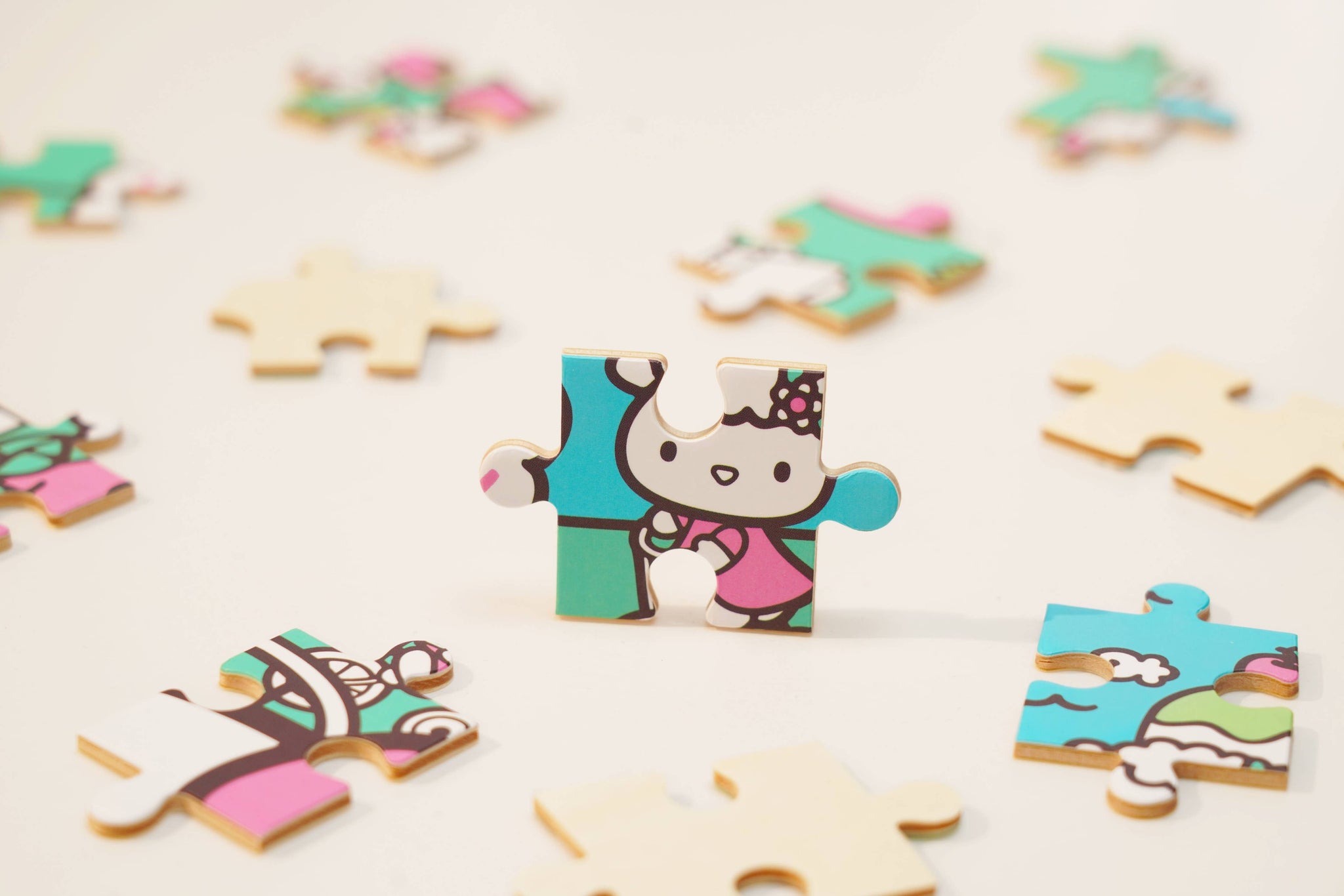 Discover joy with the Hello Kitty Wooden Jigsaw Puzzle: Amusement Park (96pcs). This officially licensed Sanrio product features iconic Hello Kitty in 96 vibrant wooden pieces. Crafted for durability and a seamless fit, it's a delightful challenge for fans of all ages 8+. Embrace positivity and bring Hello Kitty to life with this charming puzzle – perfect for relaxation and family fun. Display your completed masterpiece proudly and celebrate the timeless appeal of Hello Kitty.